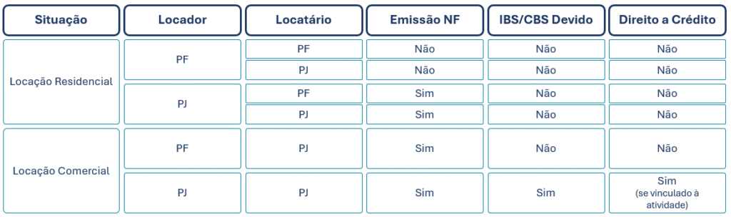 A tributação deve atingir apenas locações com finalidade econômica, ou seja, comerciais. Os locadores de imóveis residenciais, em geral, não sofrerão impacto direto da Reforma Tributária.
